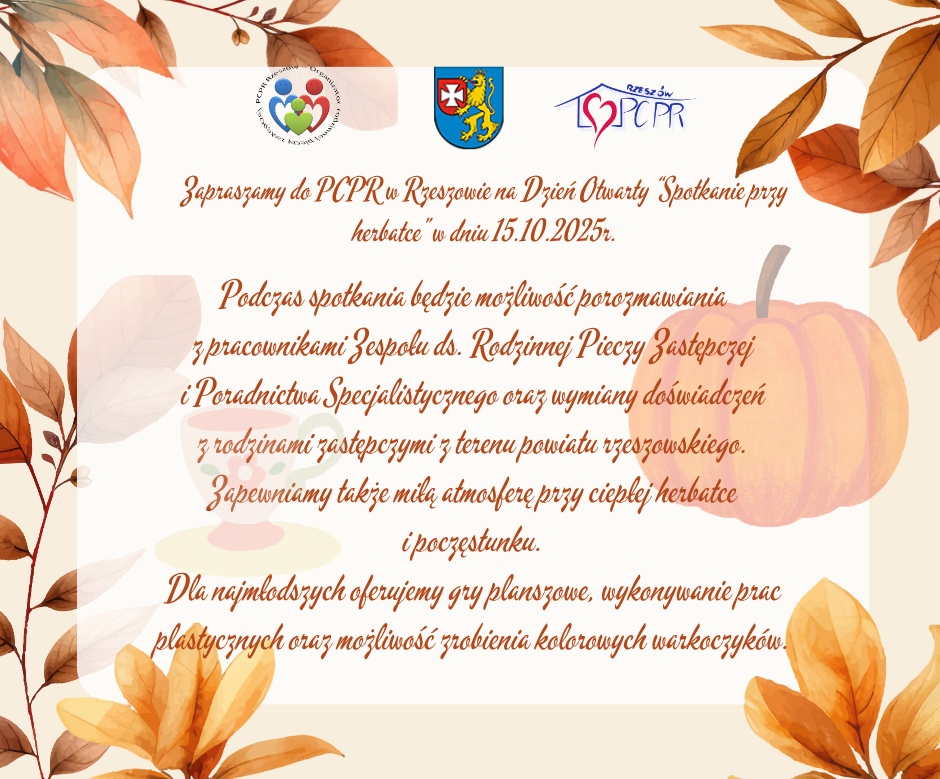 Zapraszamy już dziś do Powiatowego Centrum Pomocy Rodzinie w Rzeszowie na Dzień Otwarty „Spotkanie przy herbatce”