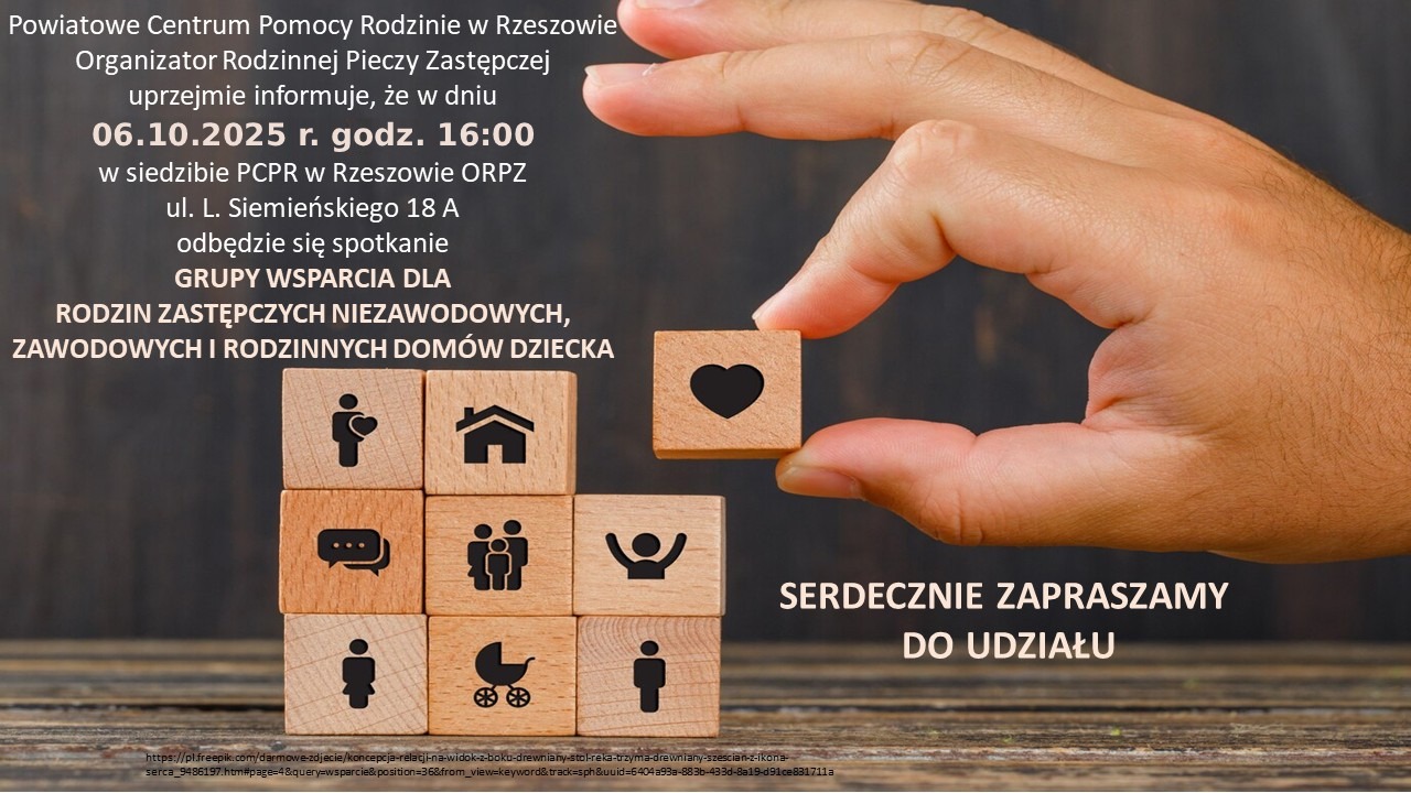 Zapraszamy na kolejne, VI już spotkanie grupy wsparcia organizowane przez PCPR w Rzeszowie – Organizatora Rodzinnej Pieczy Zastępczej dla rodzin zastępczych niezawodowych, zawodowych i prowadzących rodzinny dom dziecka.
