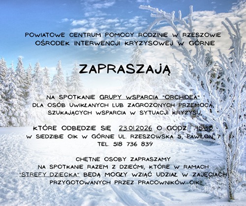 szukających wsparcia w sytuacji kryzysu, które odbędzie się 23.01.2026 o godz. 15.30