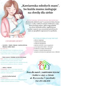 Spotkania „Kawiarenki młodych mam” planowane są cyklicznie, raz w miesiącu a udział w nich jest bezpłatny.