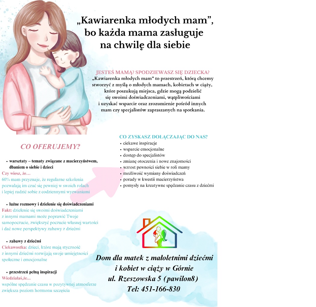 Osoby zainteresowane mogą zgłaszać się osobiście w Domu dla matek z małoletnimi dziećmi i kobiet w ciąży w Górnie przy ulicy Rzeszowskiej 5 (pawilon 8) lub telefonicznie: