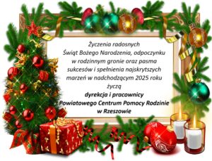 Niech te dni przyniosą wiele radości, spokoju i ciepła w gronie najbliższych. Wspólne chwile wypełni atmosferą miłości i wzajemnej życzliwości. A Nowy Rok niech przyniesie wiele sukcesów i spełnionych planów. Wspaniałych i radosnych Świąt Bożego Narodzenia oraz szczęśliwego Nowego Roku.