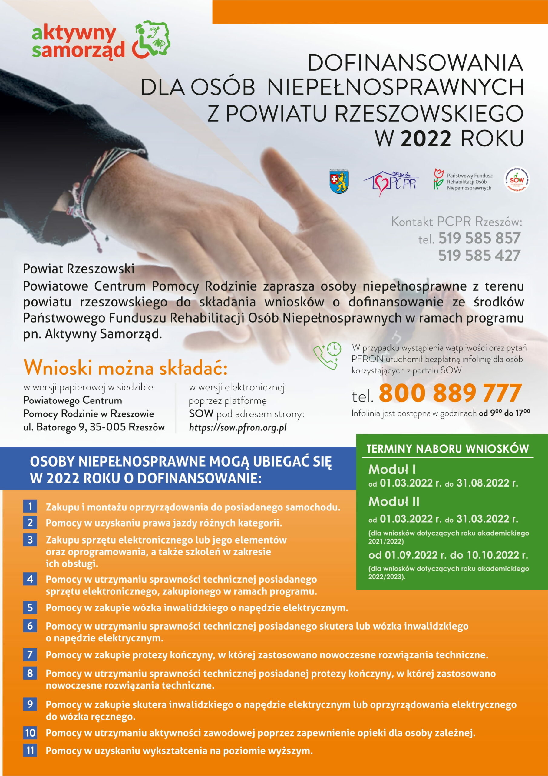 Powiatowe Centrum Pomocy Rodzinie w Rzeszowie kontynuuje w 2022 roku realizację pilotażowego programu „Aktywny samorząd”, który finansowany jest ze środków Państwowego Funduszu Rehabilitacji Osób Niepełnosprawnych.