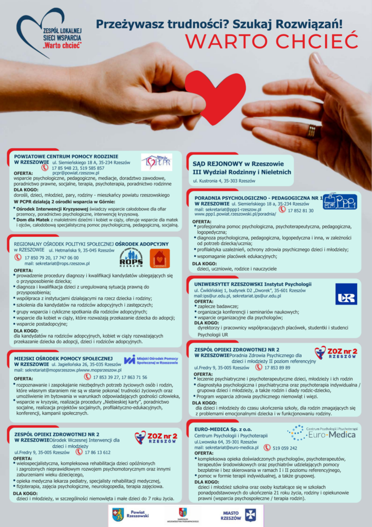 1) Poznanie zasobów i możliwości instytucji współpracujących w ramach Lokalnej Sieci Wsparcia WARTO CHCIEĆ